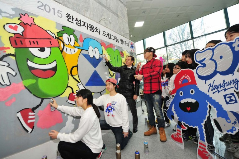 (사)한국메세나협회와 한성자동차가 2012년 MOU를 체결하여 체계적이고 특화된 사회공헌 활동인 '드림그림'이 시작되었습니다. 예술을 접하기 어려운 학생들에게 매달 아티스트와의 수업을 지원하고, 다양한 콜라보레이션을 통해 대중과 공유하고 소통할 수 있는 경험을 주는 활동을 지속하고 있습니다. 앞으로는 더 나아가 사회적 가치와 함께 유의미한 수익을 창출하고, 이것을 또다시 사회에 환원하는 선순환적인 구조를 지향할 것입니다.